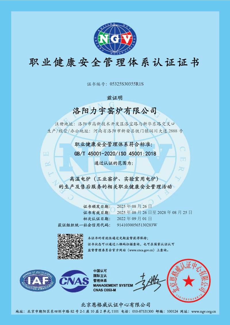 職業(yè)健康安全管理體系認證證書
